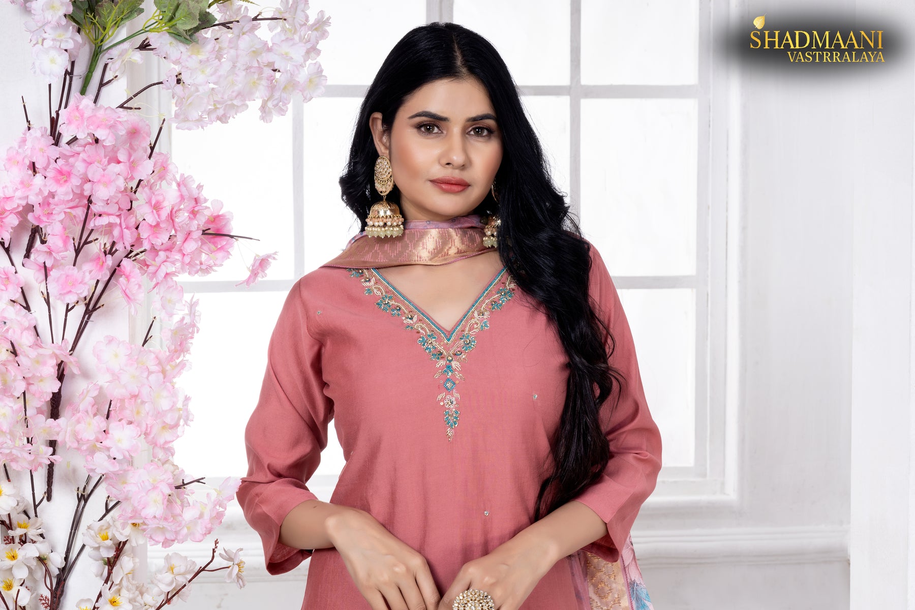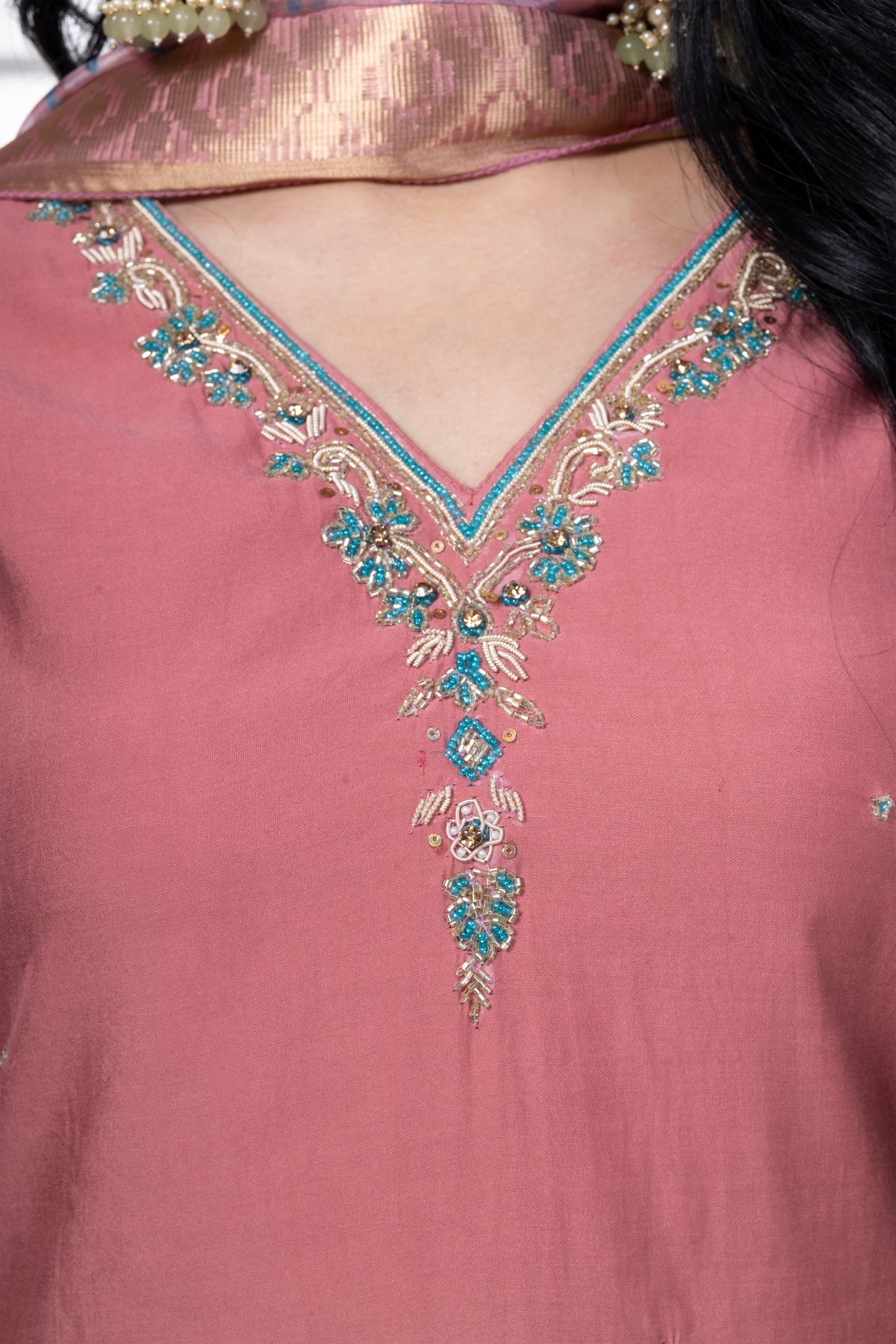 Dress is silk, looks luxury. It' has got attractive embroidery work on the neck accompanied with floral silk dupatta.